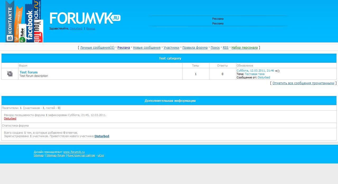 Приветствуем вас на нашем сайте! Представляем вашему вниманию новый шаблон, стилизованный под популярный портал "ВКонтакте" - Шаблон "ForumVK" для системы uCoz. Шаблон отличается приятным светлым оформлением, выполненным в спокойных тонах, что делает его универсальным решением для форумов любой направленности. В верхней части шаблона предусмотрены удобные блоки для логотипа, мини-профиля пользователя и рекламных баннеров. Внутри шаблона вы найдете все необходимое: изображения (img), файл стилей (style.css), готовый дизайн форума и подробную инструкцию по установке. Установка: 1). Скопируйте код из раздела "Общий вид страниц форума" и вставьте его в соответствующий раздел в управлении дизайном форума. 2). В файловом менеджере создайте папку "forumvk" и загрузите в нее все изображения из папки "forumvk". 3). Создайте папку "css" в файловом менеджере и загрузите в нее файл "style.css". При возникновении проблем с установкой шаблона, пожалуйста, посетите наш форум веб-мастеров. Наши участники с радостью помогут вам решить любые сложности. В ходе тестирования никаких технических проблем или ошибок в шаблоне выявлено не было. Если вы решите внести изменения в шаблон, и возникнут проблемы с отображением, просто обновите файл CSS. Скачивайте шаблон "ForumVK" бесплатно, без регистрации и ожидания, по прямой ссылке прямо с нашего сайта. Шаблон предназначен для сайтов на бесплатном хостинге сайтов "uCoz". Автор: AzAM (Азизов Азам) Источник: ForumVK.Ru (zismo) | |