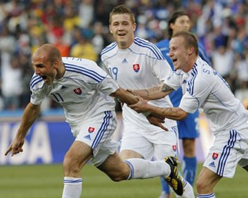 Сборная Словакии неожиданно переиграла действующих чемпионов мира итальянцев и вышла в плей-офф мундиаля в ЮАР-2010. Дублем в этой игре отличился форвард Роберт Виттек. В первом тайме словакам удалось использовать ошибку полузащитника итальянцев Де Росси: Кучка бросил в прорыв Виттека и тот поразил цель. На 74-й минуте Виттек оформил дубль, и казалось, что всё на этом закончится. Но в оставшиеся 15 минут команды ещё успели наколотить три мяча на двоих, причём два из них забили итальянцы. При счёте 3:2 в пользу Словакии Италия организовала финальный штурм ворот Мухи на последних минутах матча, но удача им не улыбнулась. В другом матче Парагвай скатал нулевую ничью с Новой Зеландией и вышел с первого места. Второе досталось Словакии. "Скуадра адзурра" же заняла последнее место в группе, уступив третью строчку новозеландцам, который покидают чемпионат, не проиграв ни одного матча.