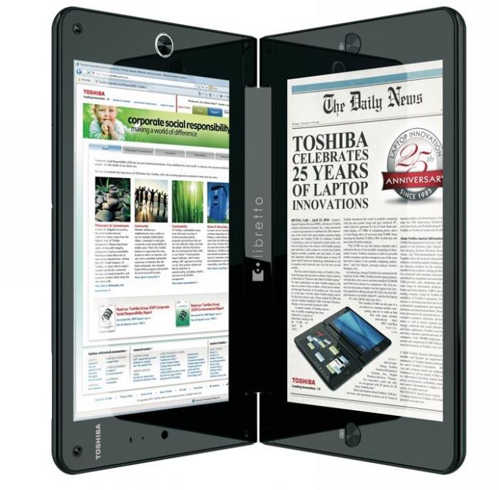 Напомним, ранее мы уже сообщали о том, что компания Toshiba собирается выпустить ноутбук без клавиатуры, но с двумя сенсорными дисплеями. Коллеги с сайта Engadget раздобыли подробности и с удовольствием делятся с миром. Встречайте, Toshiba Libretto W100 — немного странное устройство оснащено двумя 7-дюймовыми дисплеями с нетбучным разрешением 1024х600 точек. Дальше — интереснее. К счастью, Toshiba не стала использовать слабенькие Intel Atom — под крышкой Libretto W100 установлен экономичный процесор Intel Pentium U5400 на частоте 1,2 ГГц, 2 Гб оперативной памяти, SSD-накопитель на 64 Гб. Все это счастье работает под управлением Windows 7 Home Premium. Разработчики планируют вывести устройство на рынок по цене порядка $1100 в течение следующих месяцев. Первому, кто даст девайс на тестирование, — пирожок!